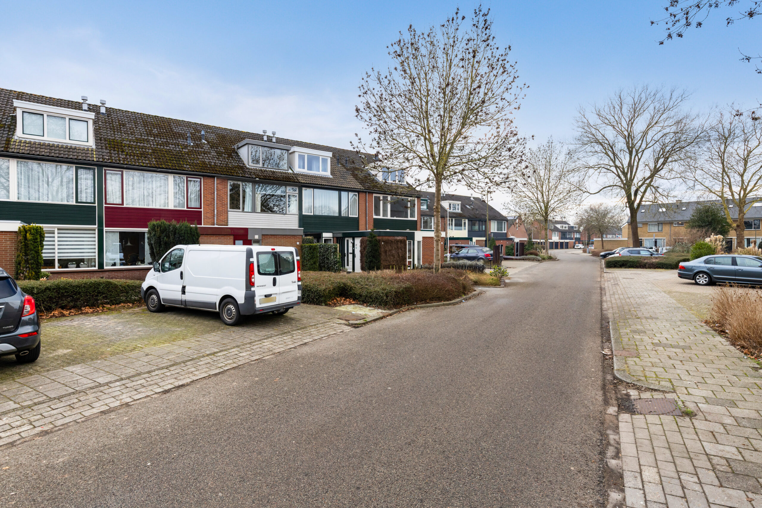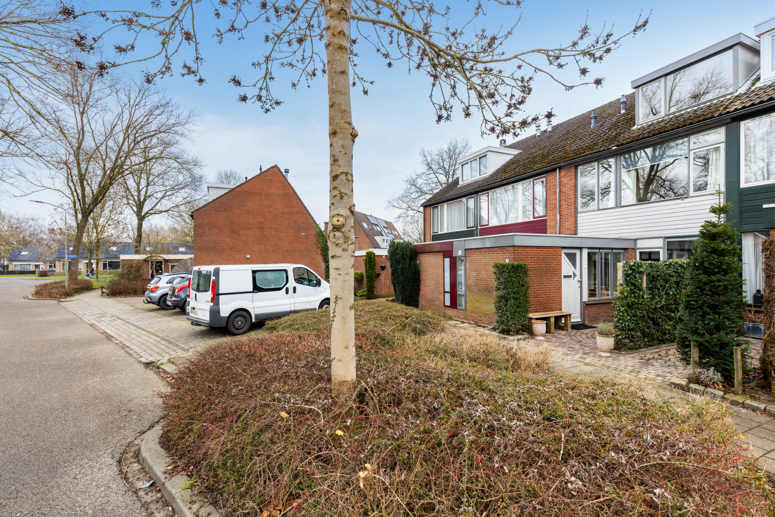 Wat een fijne woonomgeving is dit! Aan de voorzijde bevindt zich een brede groenstrook met aangrenzend openbare parkeergelegenheid en aan de overzijde een aantal garageboxen. De achtertuin grenst aan een openbaar parkeerplein, waardoor er geen directe bebouwing aanwezig is en er voldoende parkeerruimte is voor uw auto.